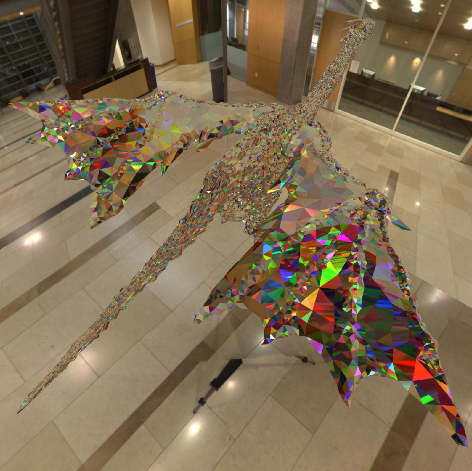 In celebration of the Year of the Dragon, everyone got to implement whatever shader they wanted on a dragon OBJ. I made a chromatic aberration shader that gives the dragon a diamondesque look.
